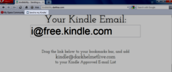 Kindlebility n'est pas une application officielle autorisée par Amazon. De ce fait, vous devez vous rendre sur votre compte en ligne Amazon pour ajouter l'adresse kindle@darkhelmetlive.com à la liste des emails autorisés. Ensuite, le favori "Send to my Kindle!", précédemment ajouté à votre barre des favoris, lance la conversion du fichier HTML en PDF et procède à l'envoi d'un email sur votre adresse Kindle.